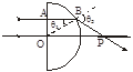 (8分)两束平行的细激光束,垂直于半圆柱玻璃的平面射到半圆柱玻璃上,如图所示。已知其中一条光线沿直线穿过玻璃,它的入射点是O;另一条光线的入射点为A,穿过玻璃后两条光线交于P点。已知玻璃截面的圆半径为R,OA=