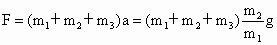 ,带有滑轮的物体放在光滑水平面上,滑轮和所有接触物的摩擦以及绳子的质量不计.为使三个物体无相对运动,水平推力F=_________.