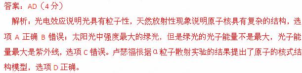 D.卢瑟福根据α粒子散射实验的结果提出了原子的核式结构模型