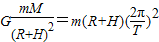 (2)因为B在地球同步卫星轨道,周期T,卫星受地球的万有引力提供向心力,故有: