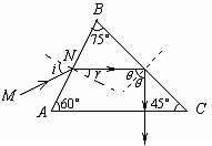 45°,则BC面上的入射角 θ=45°,由几何角度关系