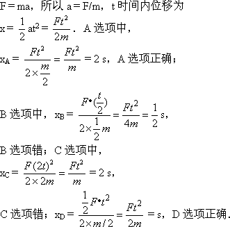 D.一半的力在相同的时间内使质量是一半的原来静止的物体移动相同的距离