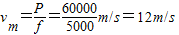 【答案】分析:①当牵引力F大小等于阻力f时,汽车的加速度a=0,速度达到最大值vm,根据公式P=Fv,可得出汽车最大速度vm.