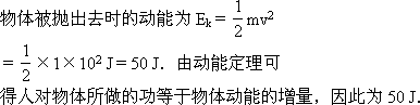 将质量为1 kg的物体沿水平方向抛出,出手时物体的速度大小为10 m/s,则物体被抛出去时具有的动能为________J;人抛出物体时,对物体做的功为________J.