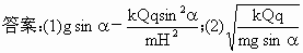 提示: (1)对A球受力分析如上图.根据牛顿第二定律 mgsinα-F=ma,根据库仑定律 解得 (2) 当A球合力为零,加速度为零时,动能最大.设此时 AB间距离为R,解得 |