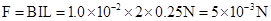 T的匀强磁强中,则导体棒受到的安培力大小为: