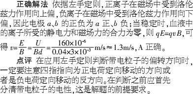 | A、血流速度的近似值是1.3m/s | B、血流速度的近似值是2.7m/s | C、电极a为正、b为负 | D、电极a为负、b为正 |
