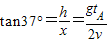 如图所示,在坡度一定的斜面顶点以大小相同的初速v同时水平向左与水平向右抛出两个小球A和B,两侧斜坡的倾角分别为37°和53°,小球均落在坡面上,若不计空气阻力,则A和B两小球的运动时间之比为( )A.3:4