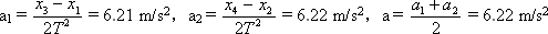实际测量纸带上各点之间的位移x1、x2、x3……都是像本题这样做的:即先分别测量B、C、D、E各点倒计时起始点A的距离,再算出AB、BC、CD、DE之间的位移x1=3.07 cm、x2=9.31 cm、x3=15.49 cm、x4=21.75 cm,本题计时单位是T=0.1 s, |