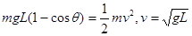 如图所示,在长度为L的细线下方系一重量为G的小球,线的另一端固定,使悬线与竖直方向的夹角θ=60°时无初速释放小球.则小球摆到最低点P时,小球的速度为__________;细线所受力的大小是__________。