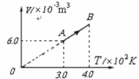在一个密闭的气缸内有一定质量的理想气体,如图所示是它从状态A 变化到状态B的V-T图象,己知AB的反向延长线通过坐标原点O,气体在A点的压.强为p=1.0x105 Pa,在从状态A变化到状态B的过程中,气体吸收的热量Q=7.0x102 J,求此过程中气体内能的增量△U