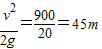 C、物体回到抛出点通过的路程为2h=90m,故C错误;