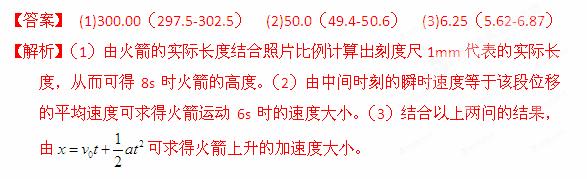 (2013山东省临沂市质检)我国用长征运载火箭已成功地发射了“神舟”系列试验飞船,某次实验过程中,一监测系统采用在同一张底片上多次曝光的照相方法,从火箭点火时刻开始,每隔2.0s曝光一次,得到了一张记录火箭在开始运动的最初8s内5个不同位置的照片(如图所示),已知火箭的长度为57.5m,当地重力加速度为9.8m/s2.用刻度尺测量照片上的有关长度,结果如图所示,根据上述条件和图示,请回答:
