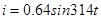 C.与灯泡并联的电压表读数为311V D.通过灯泡的电流i=0.64sin314t