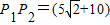由几何知识可得△OAP2为等腰直角三角形,解得AP2=10cm