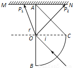 设折射角为r,两个光斑分别为P1、P2,根据折射定律