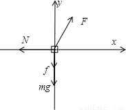 【答案】分析:对物体受力分析,受推力、重力、支持力和摩擦力,根据平衡条件并结合正交分解法列式求解即可.