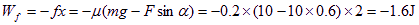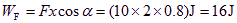 如图所示,质量为m=1kg的物体在与水平方向成α=37°的拉力F=10N的作用下,在动摩擦因数为μ=0.2的水平面上发生了一段位移x=2m,求:(g=10m/s2,sin37°=0.6,cos37°=0.8)