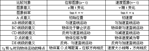 如图所示,甲、乙两图象分别是一质点运动的s-t图象和v-t图象.试说明,在两图象中的AB、BC、CD、DE四个阶段,分别表示质点做什么运动.