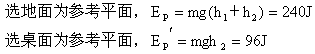 =0.8m.如果选地面为零重力势能点,物体的重力势能为_________;如果选桌面为零重力势能点,物体的重力势能为________.(g取10m/