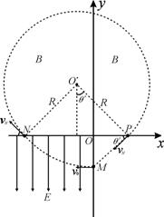 设带电粒子在磁场中做匀速圆周运动的半径为R,圆心在O′处,过P点的速度方向与x夹角为θ′,作出轨迹如图所示。则由几何关系有: