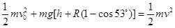 滑板运动是青少年喜爱的一项活动。如图16所示,滑板运动员以某一初速度从A点水平离开h=0.8m高的平台,运动员(连同滑板)恰好能无碰撞的从B点沿圆弧切线进入竖直光滑圆弧轨道,然后经C点沿固定斜面向上运动至最高点D。圆弧轨道的半径为1m,B、C为圆弧的两端点,其连线水平,圆弧对应圆心角θ=106°,斜面与圆弧相切于C点。已知滑板与斜面问的动摩擦因数为μ =