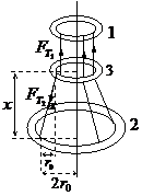三根不可伸长的相同的轻绳,一端系在半径为r0的环1上,彼此间距相等,绳穿过半径为r0的第2个圆环,另一端同样地系在半径为2r0的环3上,如图1-38所示,环1固定在水平面上,整个系统处于平衡状态.试求第2个环中心与第3个环中心之间的距离.(三个环都是用相同的金属丝制作的,摩擦不计)