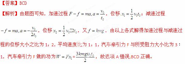 (2013山东省名校质检)一辆质量为m的汽车在发动机牵引力F的作用下,沿水平方向运动。在t0
