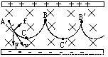 【答案】分析:带电粒子由静止释放(不考虑重力),在电场力的作用下会沿电场向下运动,在运动过程中,带电粒子会受到洛伦兹力,所以粒子会沿逆时针方向偏转,到达C点时,洛伦兹力方向向上,此时粒子具有最大速度,在之后的运动中,粒子的电势能会增加速度越来越小,到达B点时速度为零.之后粒子会继续向右重复由在由A经C到B的运动形式.