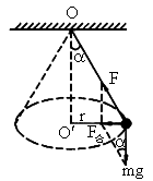长为L的细线,拴一质量为m的小球,一端固定于O点.让其在水平面内做匀速圆周运动(这种运动通常称为圆锥摆运动),如图所示.当摆线L与竖直方向的夹角是α时,求: