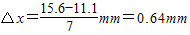 (5)A位置游标卡尺的主尺读数为11mm,游标读数为0.1×1mm=0.1mm,最终读数为11.1mm.B位置游标卡尺主尺读数为15mm,游标读数为0.1×6mm=0.6mm,最终读数为15.6mm.则相邻两个亮条纹的间距