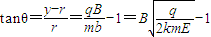 (2)粒子进入匀强磁场做匀速圆周运动,粒子都垂直x轴射出,则粒子偏转90°,从而得知粒子射出磁场的点的x坐标值为圆周运动的半径r,纵坐标为y-r,根据几何关系,结合r与速度的关系,求出直线OA与x轴的夹角正切值tanθ.