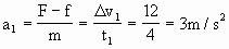 解析:物体在(0~4)s内,在水平拉力和摩擦力的共同作用下做匀加速直线运动,其加速度大小为 |