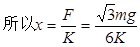 如图所示,整个装置处于静止状态,PQ为水平放置的光滑细长杆,质量均为m的两小球 A、B穿于其上.两球用长度均为L的轻线结于O点,A、B球间杆上有一劲度系数为K的被压缩的轻弹簧(在弹性限度内),这时弹簧的长度也为L.质量为m/2的C球用轻绳跨过质量不计的光滑滑轮与置于水平地面上质量为2m的D球相连,求弹簧的形变量?![]()