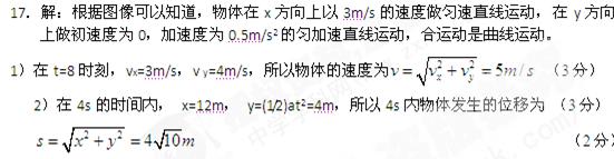 如图所示,α图表示某物体在x轴方向上分速度的v-t图像,b图表示该物体在y轴上分速度图像。求:(1)t=8s时物体的速度;(2)t=4s时物体的位移。