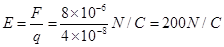 (6分).真空中有一电场,在电场中的P点放一电荷量为4×10-8 C的试探电荷,它受到的电场力为8×10-6N,则P点的场强为 N/C,若取走试探电荷,则P点的场强为 N/C 。