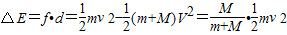 如图所示,在光滑的水平地面上静止着质量为M的木块,一粒质量为m初速为v的子弹水平击中木块,打入深度为d,试求转化为内能的值△E是多少?