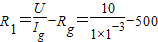图所示是一个双量程电压表,表头是一个内阻Rg=500Ω,满刻度电流为Ig=1mA的毫安表,现接成量程分别为10V和100V的两个量程,则所串联的电阻R1=______Ω,R2=______Ω.