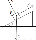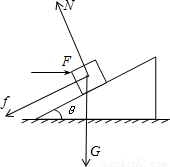 【答案】分析:由于μ<tanθ,当推力为零时,重力的下滑分量会大于最大静摩擦力,会加速下滑.用推力推住不动,推力较小时有下滑趋势,静摩擦力沿斜面向上;推力较大时有上滑趋势,静摩擦力沿斜面向下.找出即将向上滑动和即将向下滑动的两种临界情况,得出推力的范围!