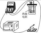 某实验小组探究一种热敏电阻的温度特性,现有器材:直流恒流电源(在正常工作状态下输出的电流恒定)、电压表、待测热敏电阻、保温容器、温度计、开关和导线等.![]()