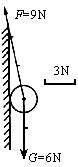 如图所示,挂在竖直墙壁上的轻质小球受到6N重力和9N绳子的拉力,在图中用力的图示法将这两个力表示出来.![]()