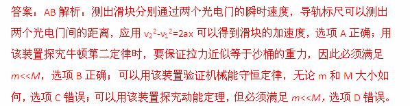 £¨2013ÁÉÄþÊ¡ÎåУÐ×÷Ìå¸ßÈýÆÚ³õÁª¿¼£©Í¼Ê¾ÎªÌ½¾¿Å£¶ÙµÚ¶þ¶¨ÂɵÄʵÑé×°Ö㬸Ã×°ÖÃÓÉÆøµæµ¼¹ì¡¢Á½¸ö¹âµçÃÅ¡¢»¬¿éºÍɳͰµÈ×é³É¡£¹âµçÃÅ¿ÉÒÔ²â³ö»¬¿é·Ö±ðͨ¹ýÁ½¸ö¹âµçÃŵÄ˲ʱËÙ¶È£¬µ¼¹ì±ê³ß¿ÉÒÔ²â³öÁ½¸ö¹âµçÃżäµÄ¾àÀ룬ÁíÓÃÌìÆ½²â³ö»¬¿éºÍɳͰµÄÖÊÁ¿·Ö±ðΪMºÍm.ÏÂÃæËµ·¨ÕýÈ·µÄÊÇ_______