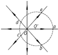 如图,水平线上的 O 点放置一点电荷,图中画出电荷周围对称分布的几条电场线。以水平线上的某点 O’为圆心画一个圆,与电场线分别相交于 abcde,下列说法正确的是
