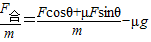 D、物体所受的合力F合=Fcosθ-μ(mg-Fsinθ),所以加速度a=