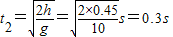 答:(1)篮球下落的时间为0.4s;