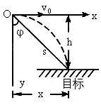建立如图所示的坐标系,炸弹离开飞机后做平抛运动,要刚好落到目标点,位移 s与竖直方向的夹角