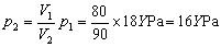 1mm水银柱产生的压强为133Pa,令133Pa = Y Pa。 当实际大气压相当于768mm水银柱产生的压强时,气体的压强p1 = 768Y Pa-750 Y Pa = 18 Y Pa,这时气体的体积V1 = 80 S(S为玻璃管的横截面积)。 当气压计读数为740mm水银柱时,气体体积V2 = (80+10)S = 90 S。 由玻意耳定律可求出这时气体的压强 此时实际的大气压p = (740 + 16) Y Pa = 756Y Pa,即相当于756 mm水银柱产生的压强。 |