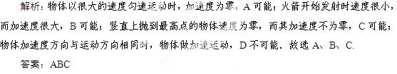体在某时刻运动速度很大,而加速度为零