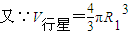 (2)质量为m的人造卫星在靠近行星表面绕行时,可认为其轨道半径为R1,设绕行速度为v,由万有引力提供向心力有: