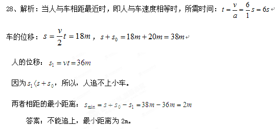 【小题2】若能追上,求追上时小车的速度;若追不上,求人与车的最小距离。
